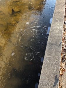しかしやっぱり暖冬なんでしょうか?昼間の暖かさのせいでしょうか?池の氷が今年は特に薄い気がします。毎年乗れるくらいの厚さになるはずなのに…