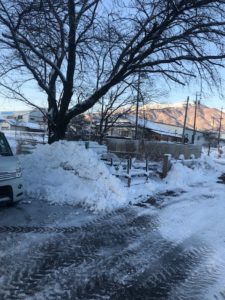 昨日から降り積もった雪で真っ白な景色になりました。駐車場は昨夜のうちに雪かきをしてくれてあったので、とても助かりました。ありがとうございました。
