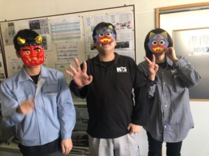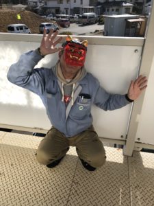 そんな今日、本社同様、陸前高田営業所でも節分の豆まきを行いました。