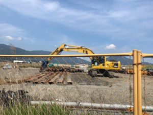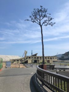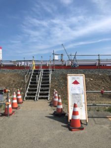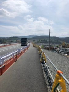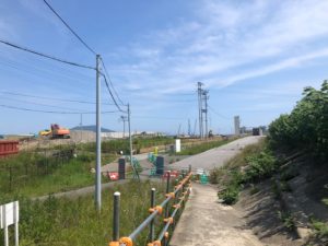 後は道に沿って歩いていきます。現在も工事中なので重機の音が鳴りやみません。警備の方もいらっしゃって安全に歩いていくことが出来ます。