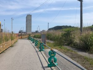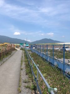 道の駅が建設中なのが見えます。そこを右に道なりに歩いていきます。頑張って歩きましょう!