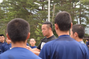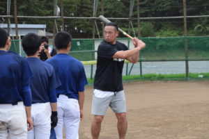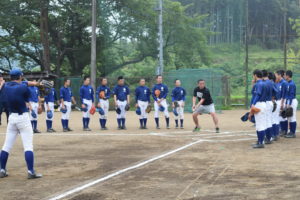 この日は、少し海風が校庭に入ってくる時間帯もありましたが、野球部員21名は30度近い気温の中で熱心な指導に耳を傾けていました。