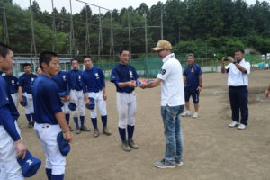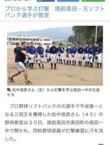 7月30日(火)に岩手県陸前高田市にある高田第一中学校で、プロ野球ソフトバンクの元選手、松中信彦さんによる野球教室が行われました。