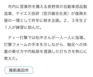 この野球教室は昨年に引き続き、弊社が復興支援の一環として企画しました。
