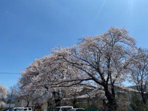 4/13の雨にも負けず駐車場の桜が満開になりました。