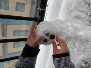 10時の休憩の時には小さな雪だるまが現れました。