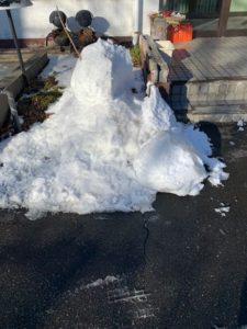 夕方にはかなり積もったので、さらに大きな雪だるまが現れました。